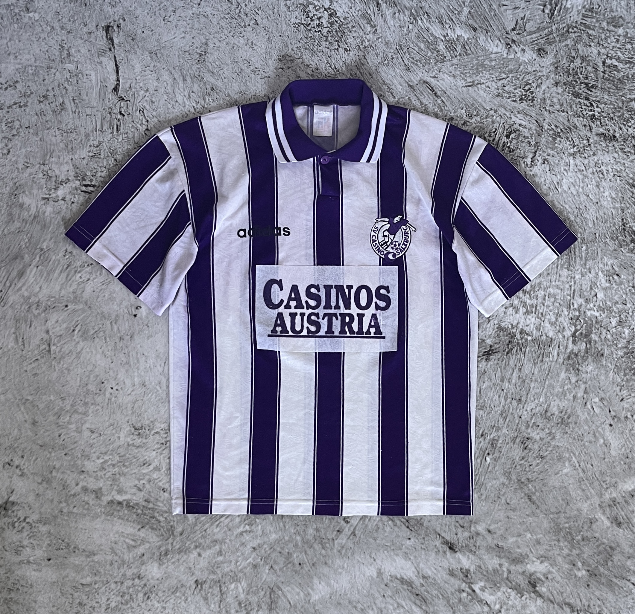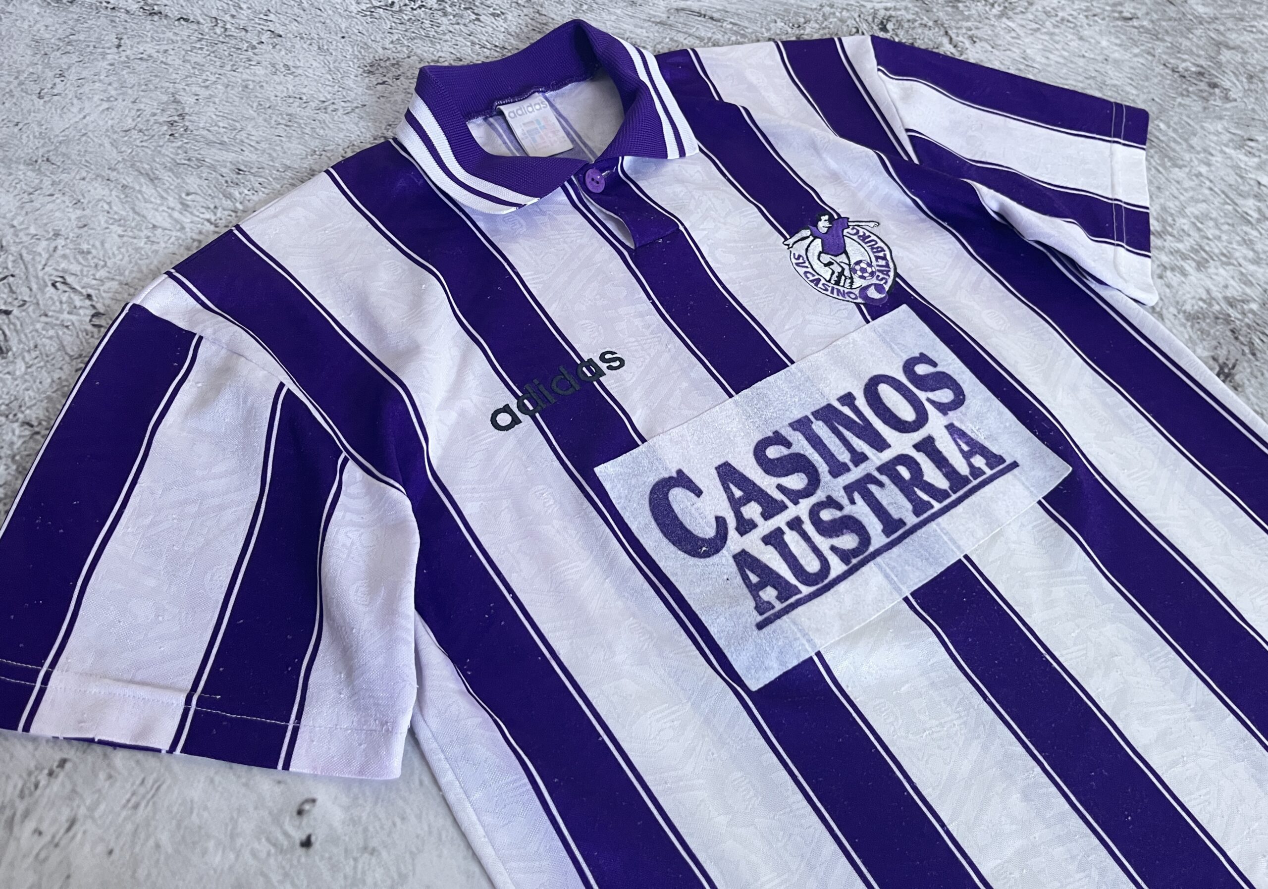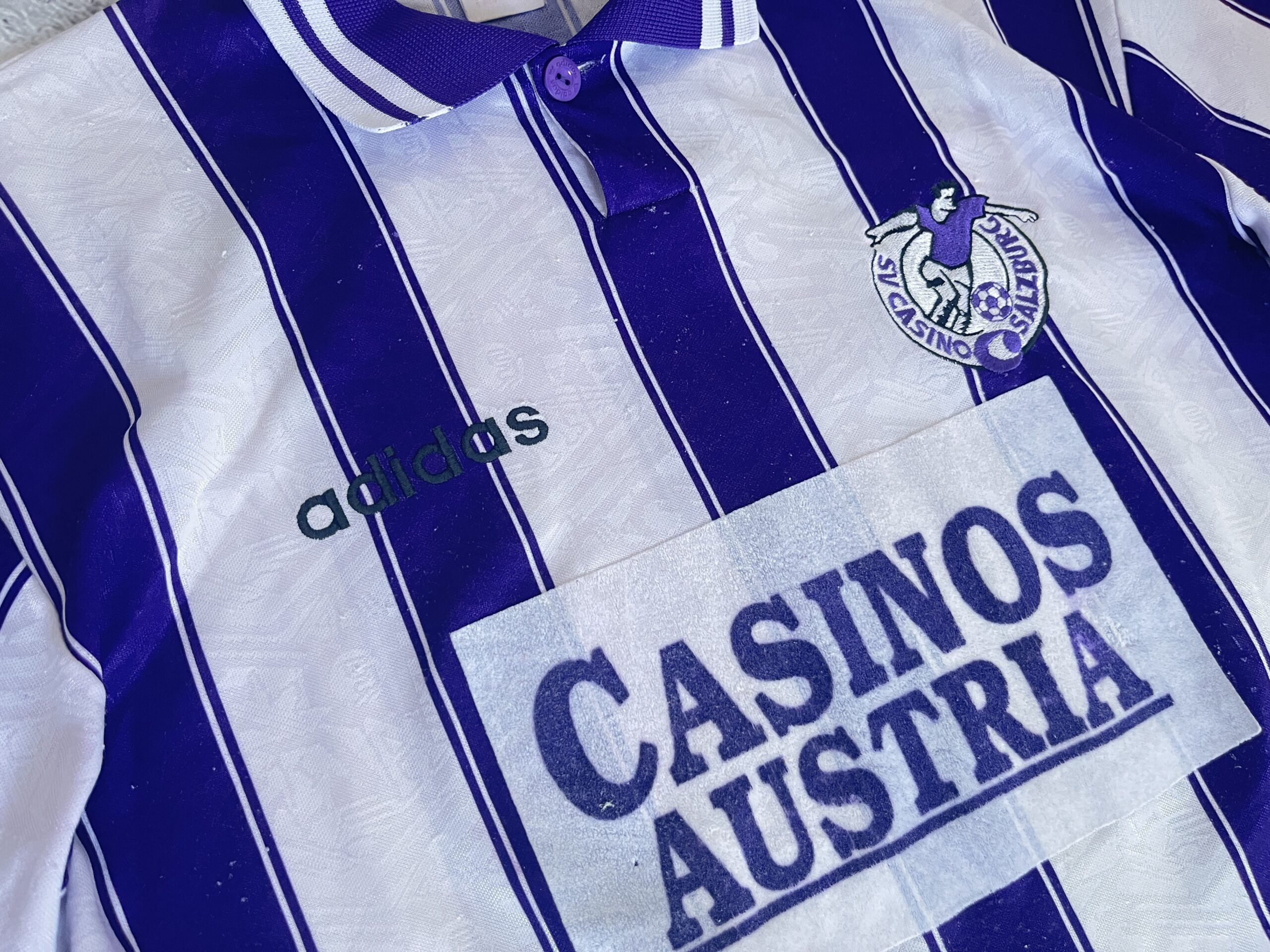 Koszulka SV Casino Salzburg z sezonu 1995/96 w wersji domowej przeznaczonej na Europejskie Puchary