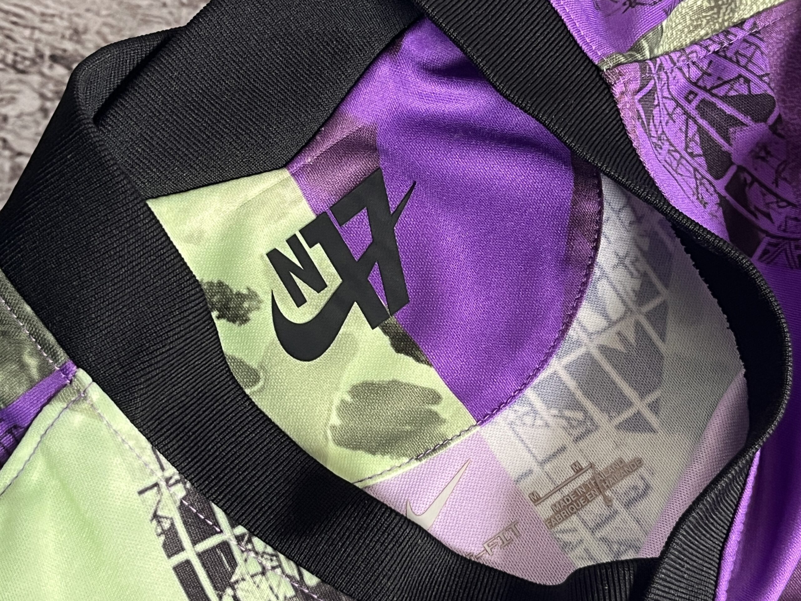 Stan bardzo dobry – z bliska widoczne drobne ślady po wcześniejszym namesecie (obok nazwiska zawodnika) Minimalnie odkleja się koncówka znaku Nike